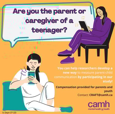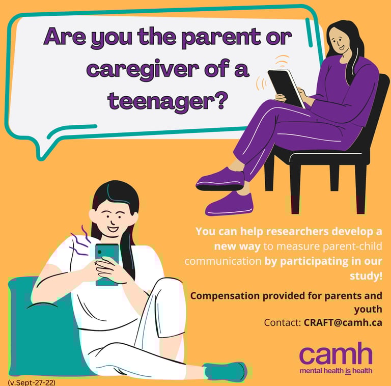 We're looking for Canadian parents and adolescents to participate in a study on text message communication being done by researchers at the Centre for Addiction and Mental Health.